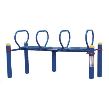 鍛煉方法:雙手抓住鞍馬訓(xùn)練器的兩側(cè)把手,把身體撐起,在其上做各種回旋轉(zhuǎn)、擺動、平移運(yùn)動,以次鍛煉臂力、軀