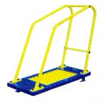 鍛煉方法:雙手分別抓住兩側(cè)扶手,雙腳踏在圓管上作跑步運動。